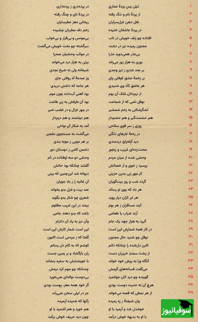 سوفیانیوز: داستان لیلی و مجنون، داستان عاشقانه غم انگیزی است که شاعران زیادی در وصف آن سروده اند. اما معروف ترین آن ها در شعر نظامی گنجوی است. در این مطلب از سوفیانیوز دوشنبه و پنجشنبه هر هفته به خواندن داستان لیلی و مجنون بپردازیم.