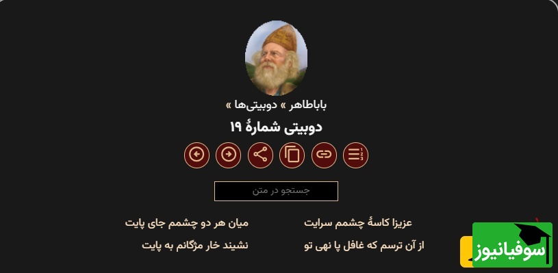 سوفیانیوز: در این قسمت با ویدیویی از شعرخوانی استاد کاکاوند از باباطاهر در خدمتتان هستیم. خوشحال میشویم همراه ما باشید.