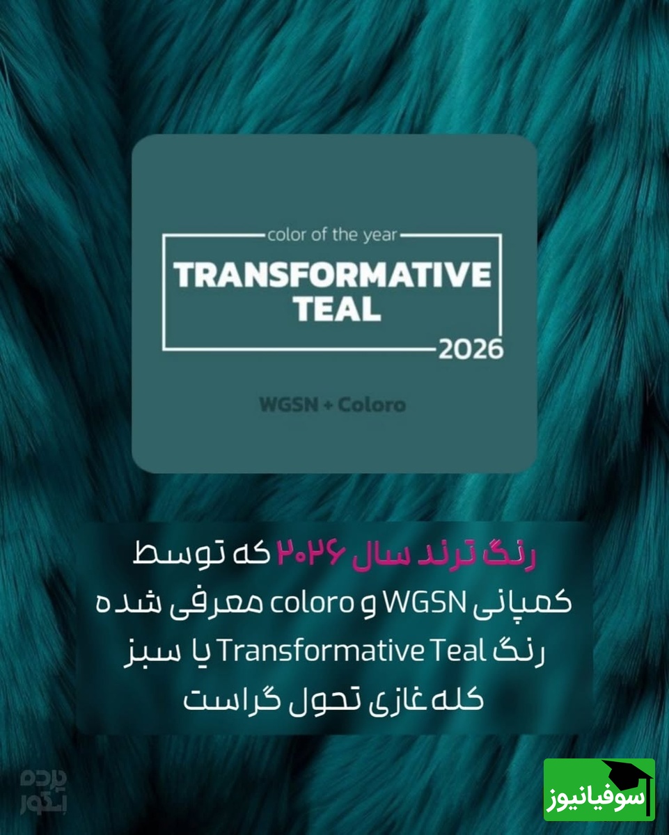 سوفیانیوز: ساعاتی پیش کمپانی مشهور «wgsn» که هر ساله در کنار کمپانی پنتون، رنگ سال رو در بخشهای مختلف اعلام میکنه، با انتشار پستی اعلام کرد رنگ سال 2026 فشن، رنگ «transformative teal» است.