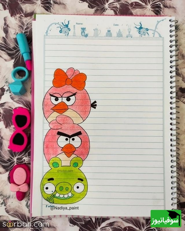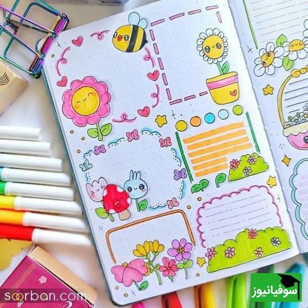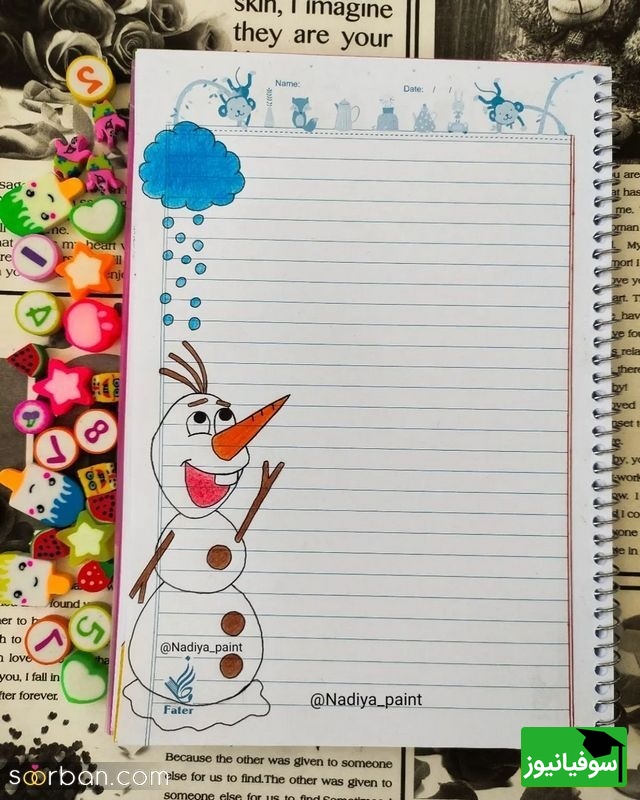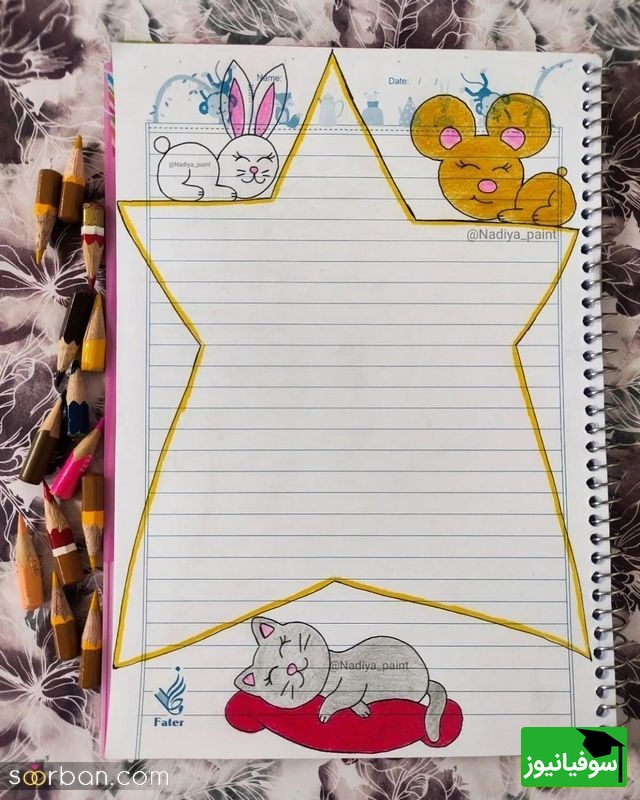 سری هفتم ایدههای ناب تزیین دفتر مشق/ مدل تزیین دفتر مشق 2025 با جدیدترین نقاشی حاشیه دفتر بانمک و فانتزی رنگی رنگی!(عکس)