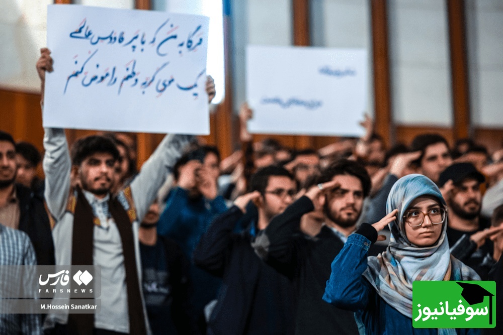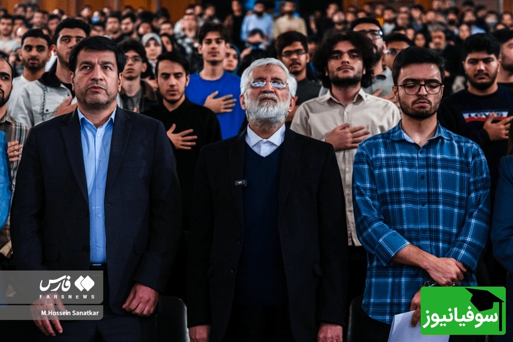 (عکس) میتینگ سعید جلیلی در روز دانشجو آدم را به دهه 60 میبرد / از پلاکارهای دست نویسی شده تا تم سالن با روزنامههای انقلابی