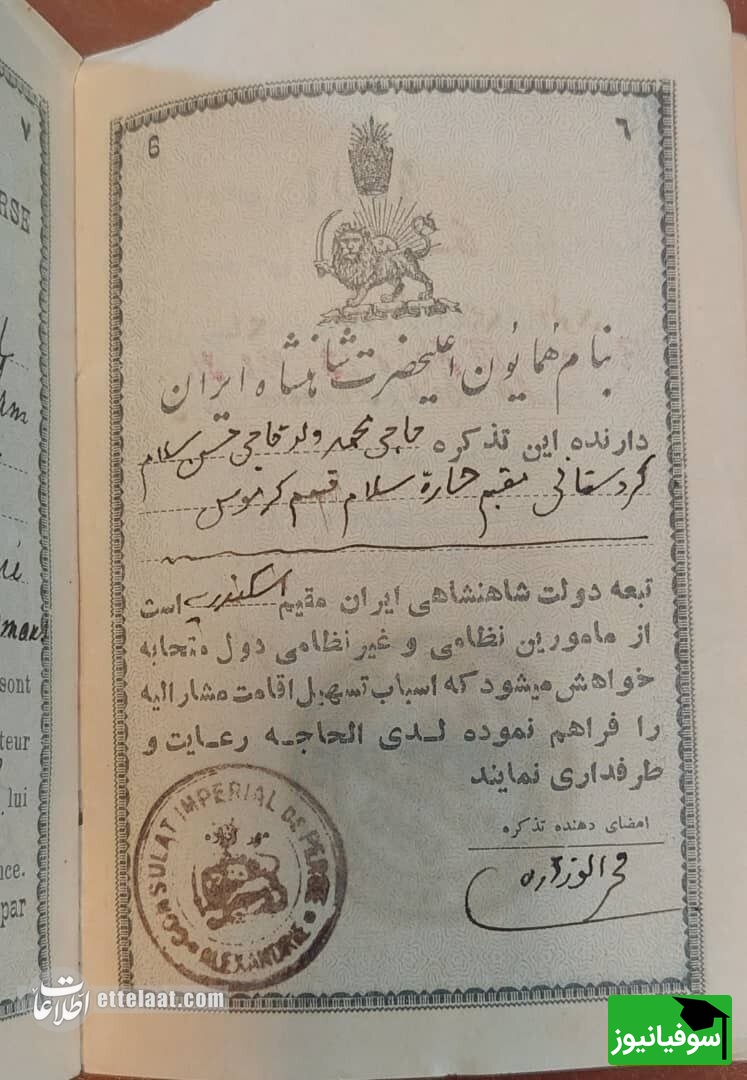 سوفیانیوز: تصویر گذرنامه ایرانی در سال 1923 میلادی ( سال 1302 شمسی) را مشاهده میکنید.