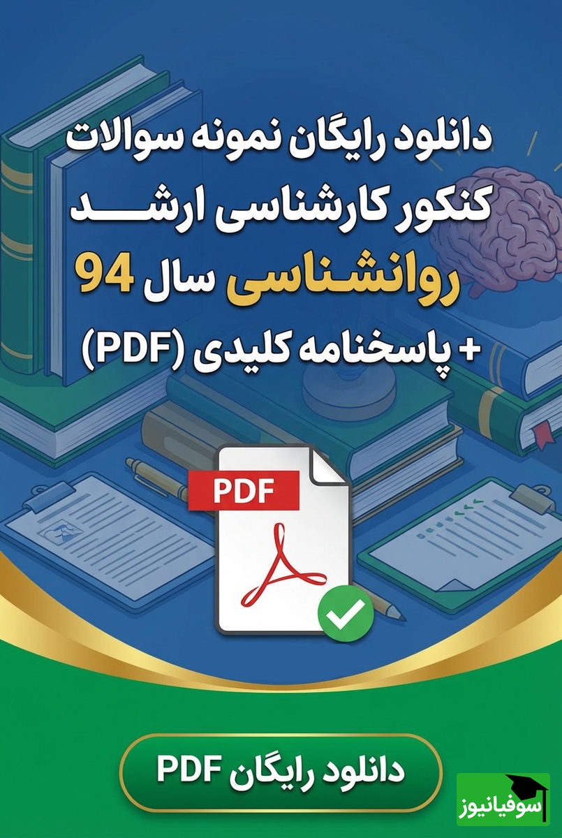 سوفیانیوز: دانلود رایگان PDF سوالات و پاسخنامه کنکور ارشد روانشناسی 1394؛ شامل آمار و روش تحقیق، روانشناسی عمومی، رشد، بالینی، فیزیولوژیک و روانسنجی. منبع کاربردی برای داوطلبان ارشد 1405–1406 جهت تمرین مدیریت زمان، شناسایی نقاط ضعف و مرور سوالات واقعی + لینک مستقیم دانلود و نکات رتبههای برتر.