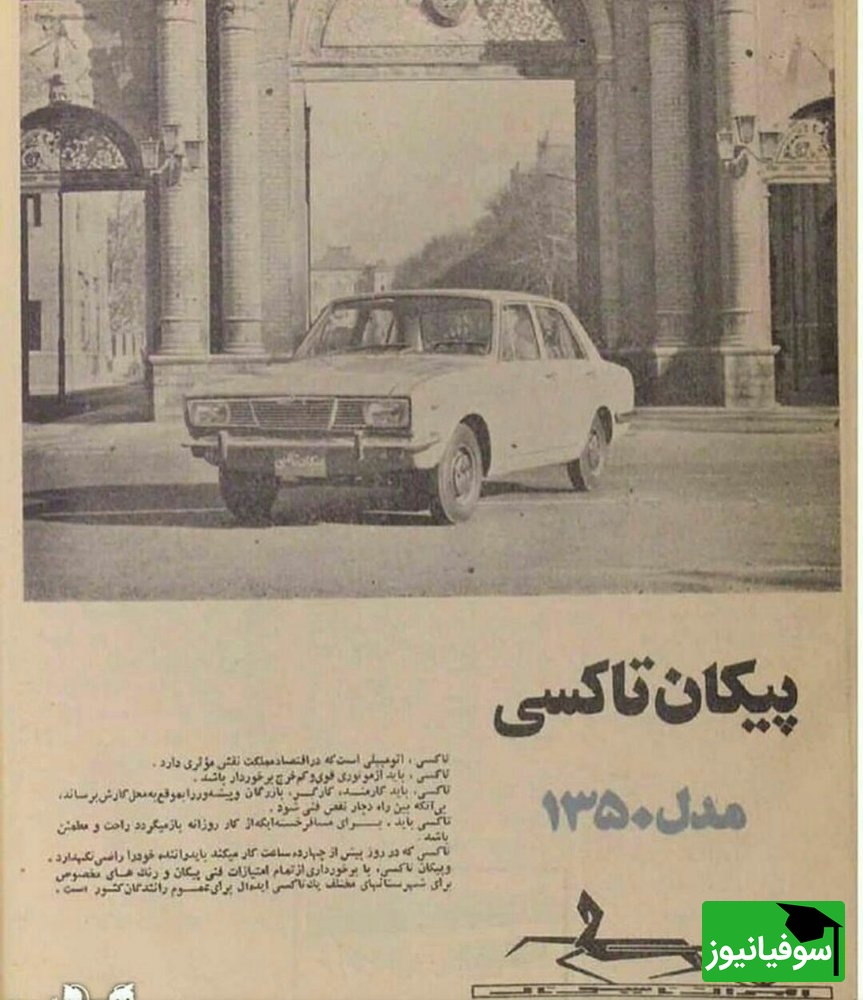 تصویر زیر تبلیغ پیکان تاکسی را در اولین سال از دهه 50 نشان می دهد: