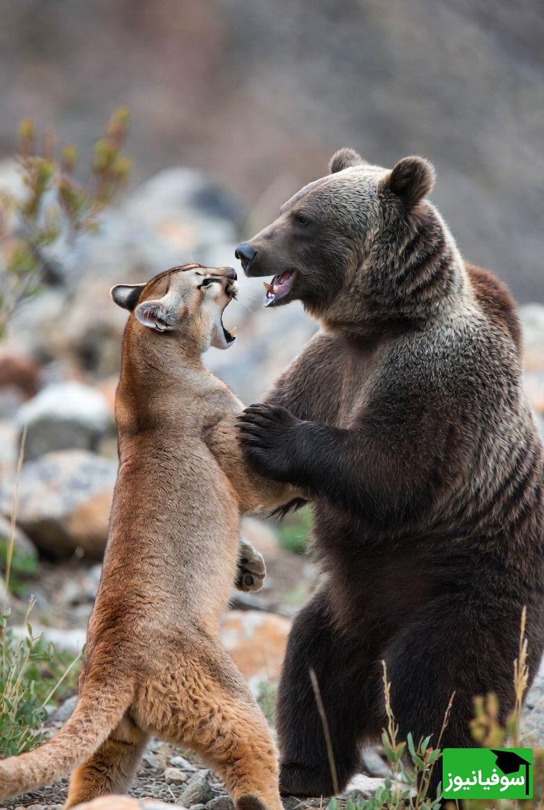 مستند حیات وحش/ رازبقا/ نبرد هولناک شیر کوهی و خرس گریزلی در ارتفاعات+فیلم