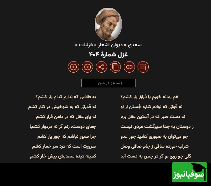 سوفیانیوز: در ادامه با عاشقانه ترین شعر سعدی شیرازی همراه ما باشید.