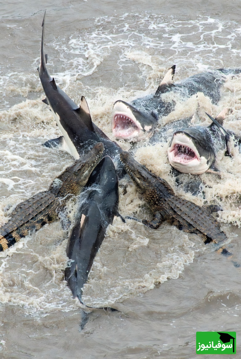 مستند حیات وحش/ این داستان: نبرد دلهره آور کوسه های وحشی با گله کروکودیلها در آب که به تراژدی ختم شد+فیلم +18