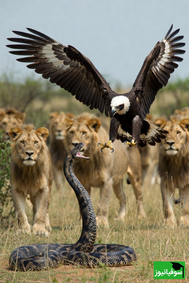 سوفیانیوز: کمتر پیش میآید که یک مار بتواند یک عقاب را به دام بیاندازد و برای خفه کردنش تقلا کند، اما شاید نادرتر از آن، مداخله ناگهانی یک شیر در این صحنه باشد.