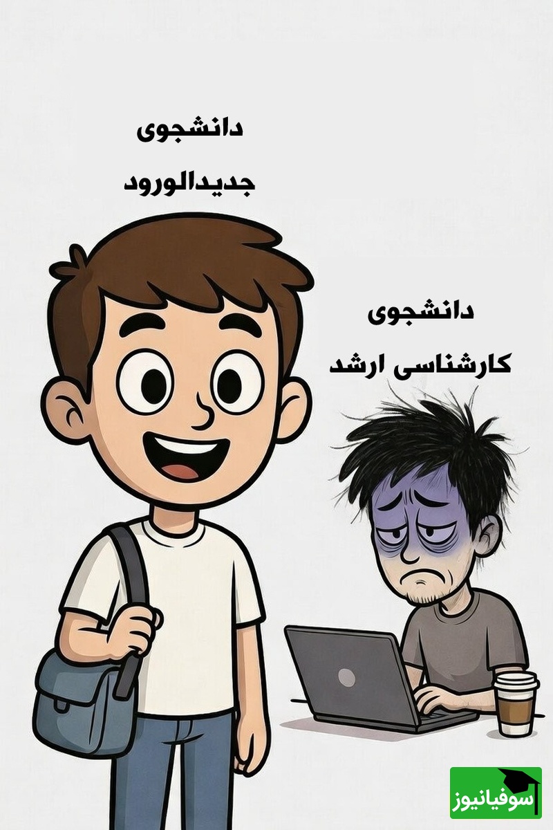 سوفیانیوز: دانشجوی ترم یکی با انرژی 1000 درصد داره دانشگاه رو مثل یه پارک تفریحی میبینه و فکر میکنه «ارشد که چیزی نیست، دو سال دیگه تمومه». دانشجوی ارشد اما با انرژی منفی 400 درصد نشسته کنار پنجره و به همون بچه ترم یکی نگاه میکنه و تو دلش میگه «کاش میتونستم بهش هشدار بدم… ولی انرژی توضیح دادنمم ندارم».