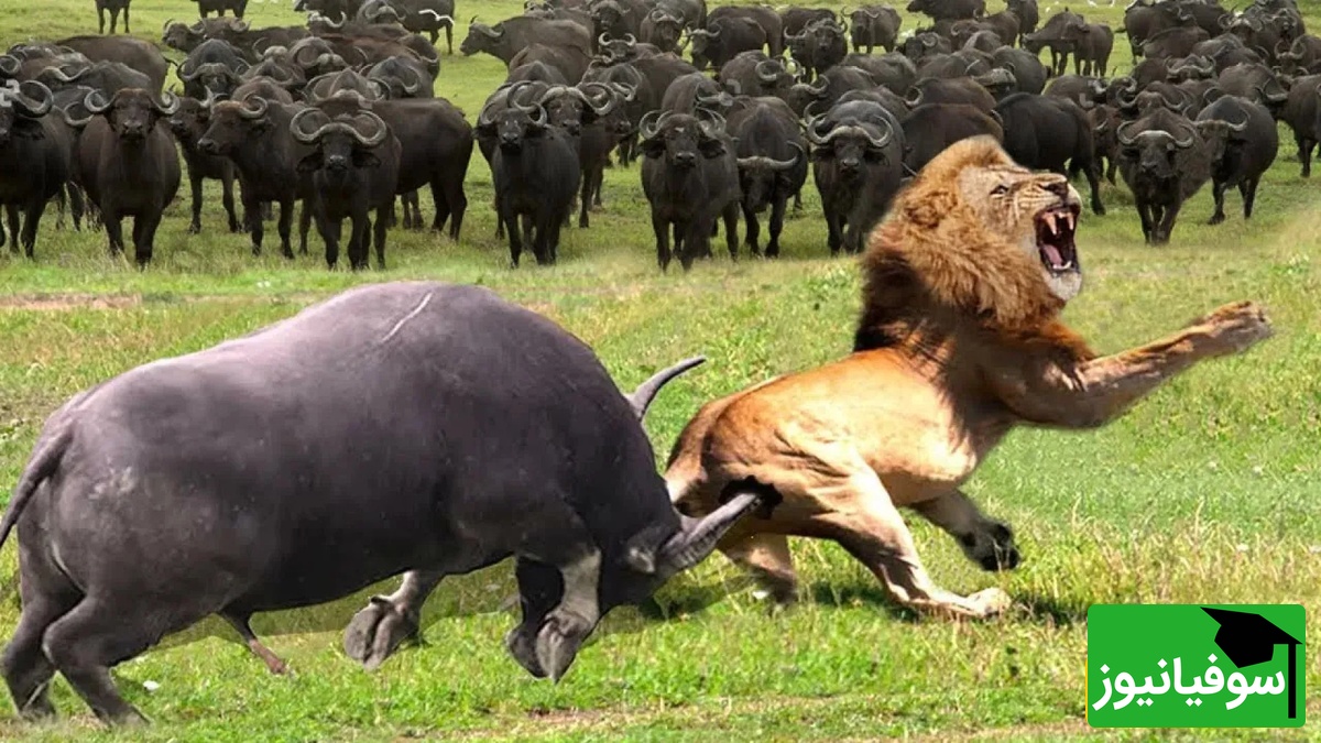(ویدئو) شیر نر تنها مغلوب بوفالوی عظیمالجثه شد