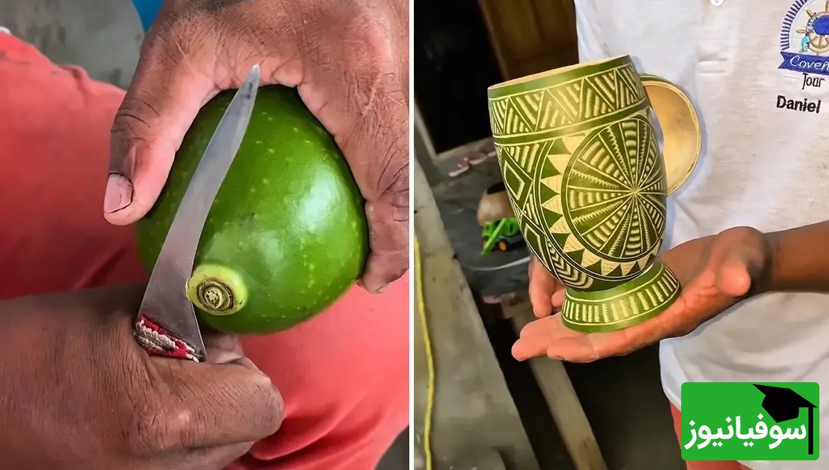 سوفیانیوز: هنر حکاکی بر روی میوهها و پوستههای طبیعی، بار دیگر در فضای مجازی توجه مخاطبان را به خود جلب کرده است. در ویدئویی که اخیراً وایرال شده، هنرمندی با استفاده از ابزارهای ساده، فرآیند شگفتانگیز تبدیل یک میوه سبز و خام را به یک جام هنری با نقوش هندسی پیچیده به تصویر کشیده است.