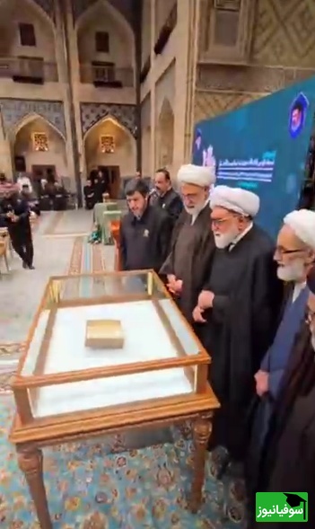 مراسم رونمایی از دستخط رهبر شهید انقلاب بر نسخه خطی نفیس قرآن مجید که به آستان قدس رضوی اهدا کردند+فیلم