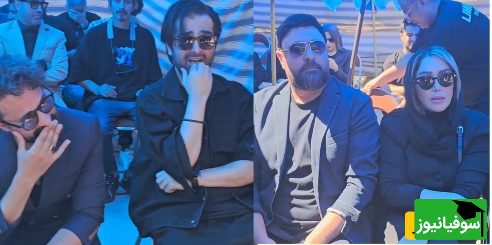 چهرههای غمگین و عزادار مصطفی راغب، فرزاد فرخ، محسن افشانی ، محمد علیزاده و همسرش در مراسم چهلم حمید هیراد/ روحش شاد و یبادش گرامی