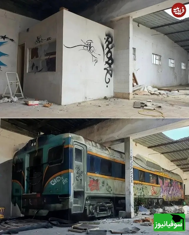 قطار متروکه: این نقاشی کوچک یک اتاق را به یک ایستگاه قطار کامل تبدیل کرده است. زنگ زدگی و گرافیتی روی قطار بسیار واقعی به نظر میرسد.