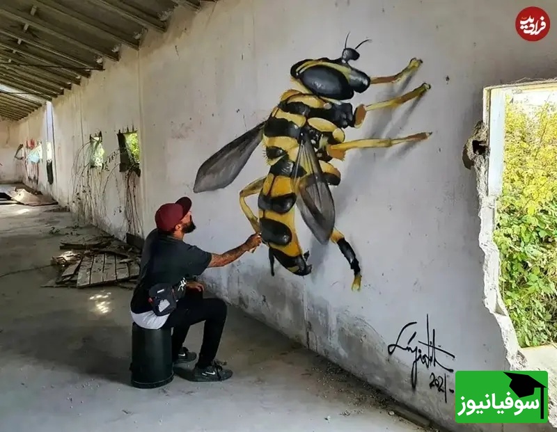 زنبور غولپیکر: این زنبور عاشق فضای باز و دیوارهای خزهای است. این اثر سهبعدی بهقدری خوب کشیده شده که ممکن است از ترس نیش زنبور بخواهید چند قدم عقب بروید!