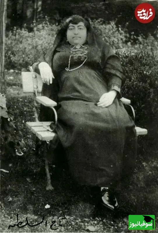 عصمتالدوله و سگ کوچکش که در گوشه عکس (پایین سمت راست) دیده میشود