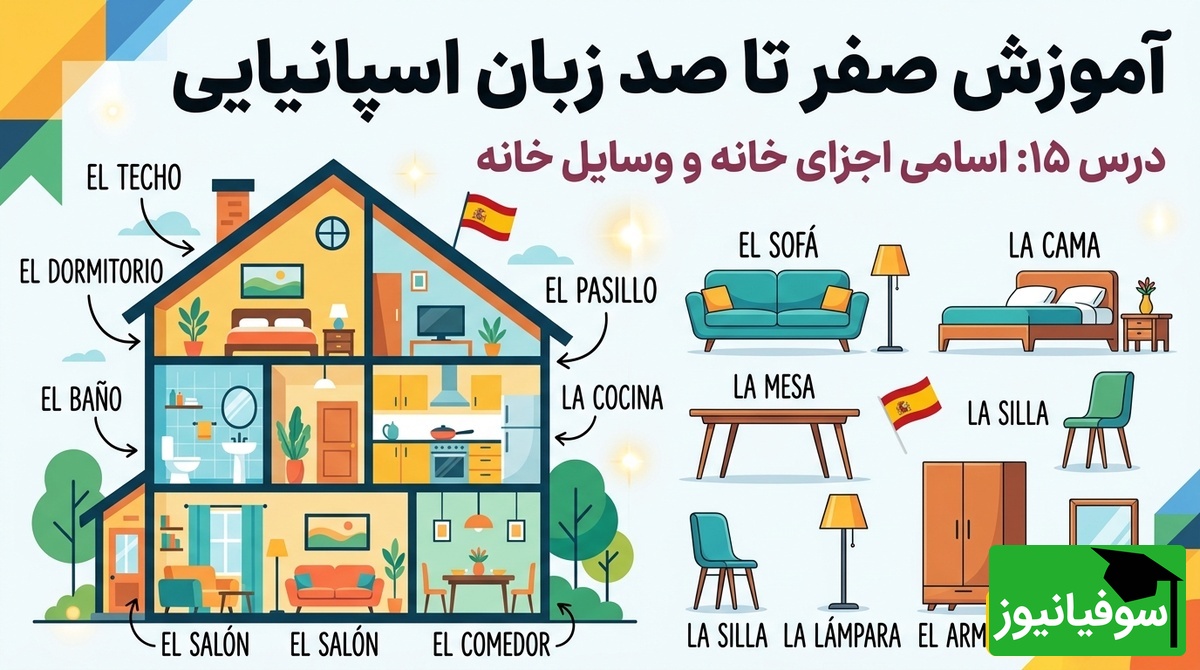 آموزش رایگان صفر تا صد زبان اسپانیایی؛ درس پانزدهم: اسامی اجزای خانه و وسایل خانه