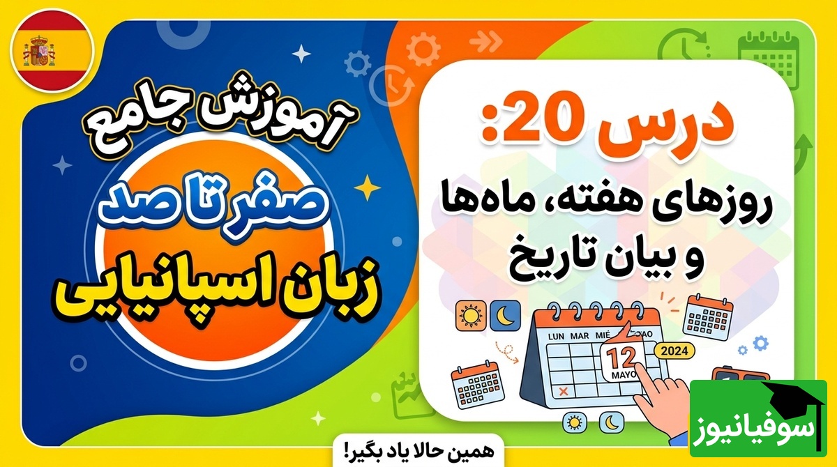 سوفیانیوز: در درس بیستم آموزش زبان اسپانیایی، بهصورت کامل و کاربردی با روزهای هفته، ماههای سال و نحوه بیان تاریخ آشنا شوید. با مثالهای ساده و قابل فهم، مهارتی کلیدی برای مکالمه روزمره و نوشتار را یاد بگیرید و سطح زبان خود را سریعتر ارتقا دهید.